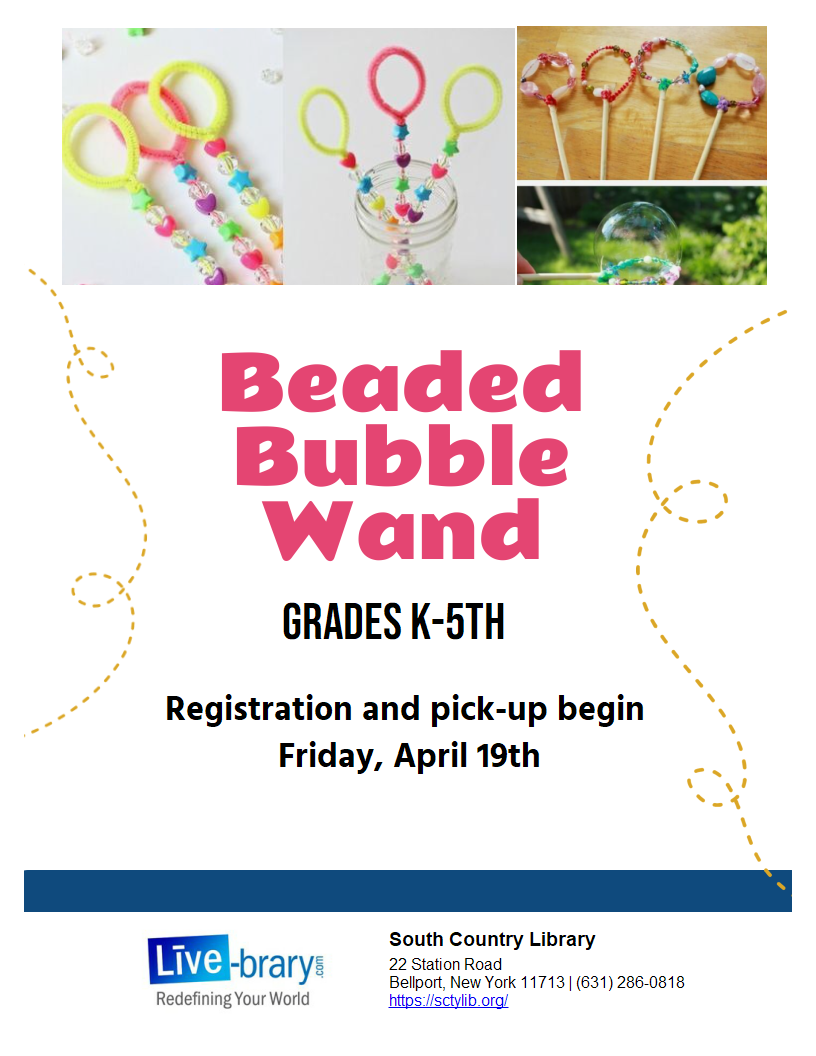 04/19/24 @ 4:00pm – 04/19/24 @ 4:30pm Community Room A South Country Library Registration is required. Registration starts: 04/08/2024 @ 9:30am Registration end: 04/26/2024 @ 4:00pm For 2.5 – 5 years AND an adult. Have… Art for Littles series [2.5-5 years AND an adult]