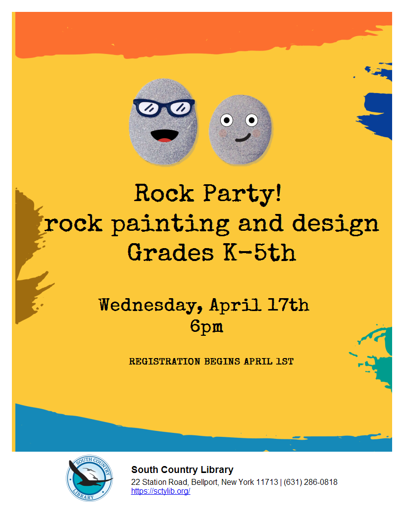 04/17/24 @ 6:45pm – 04/17/24 @ 8:30pm Community Room B South Country Library Registration is required. Registration starts: 04/07/2024 @ 9:30am Registration end: 07/10/2024 @ 9:00am Interested in receiving direct feedback on your writing from… Writer’s Workshop